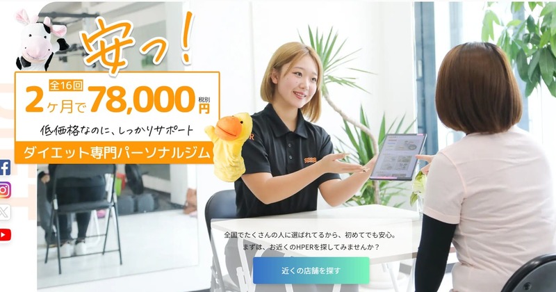 週2回のマンツーマン指導に加えてLINEでの食事管理サポートが含まれているジムが多く、費用対効果のバランスが優れています。