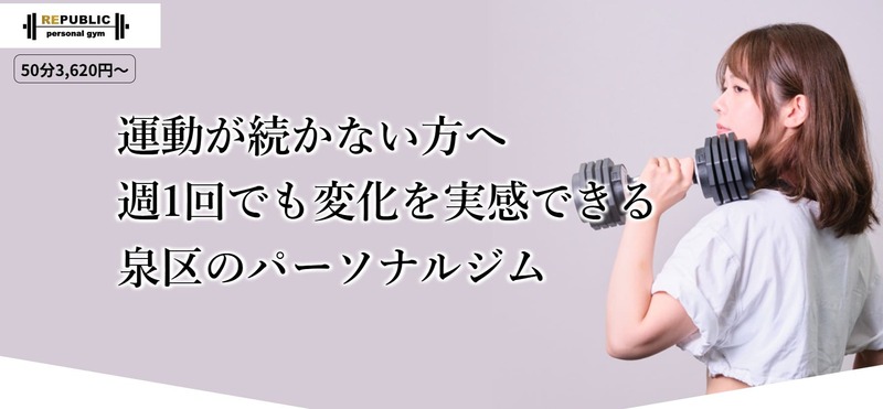 長町・泉中央・宮城野エリアにはリアルボディ長町店・REPUBLIC泉中央・フォースクエア・HAKE FITNESSなどのパーソナルジムがあります。
