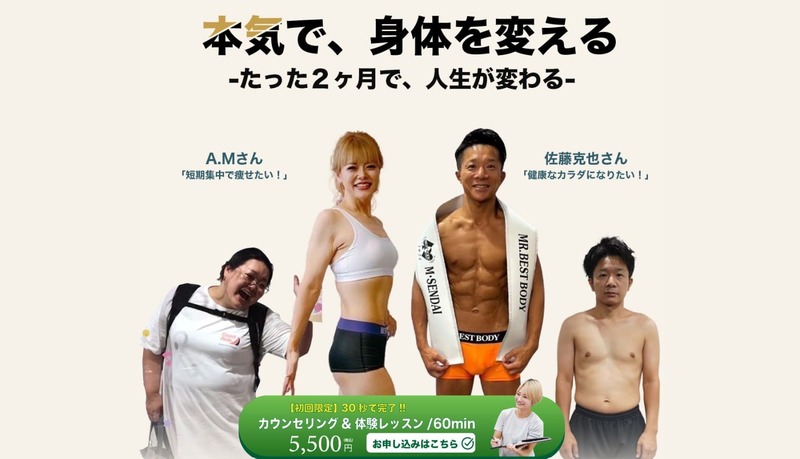 完全オーダーメイドのトレーニングメニューと食事管理で、最短・最速で理想の体に近づけるアプローチが魅力です。
