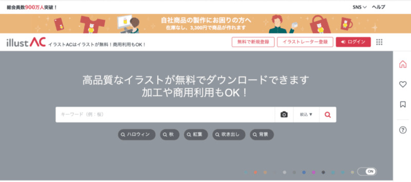 商用利用可能なイラストを無料でダウンロードできるイラストACは、利用者にとって敷居が低く、ダウンロード率が高い傾向にあります。