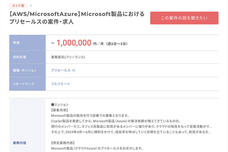 ITプロパートナーズに掲載されている案件の例を見てみましょう。