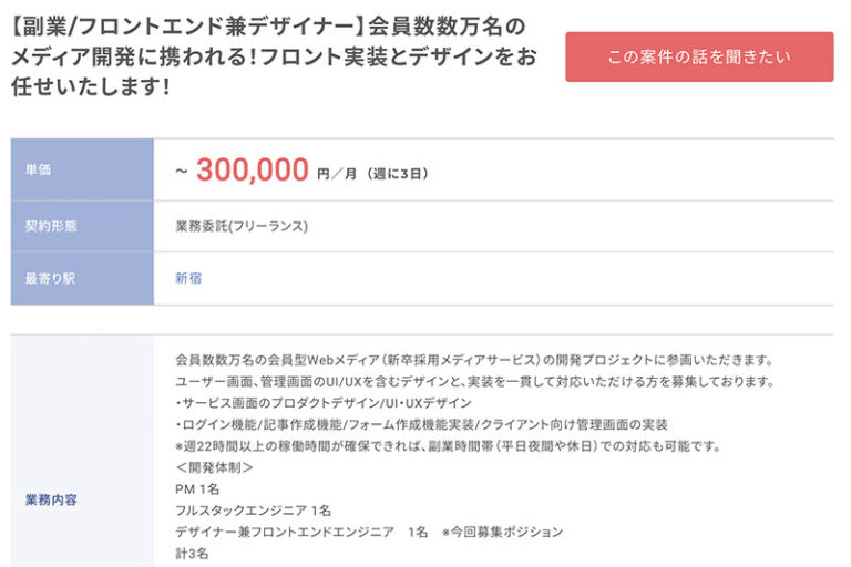 例えば、レバテックフリーランスでは以下のような短期案件が公開されています。