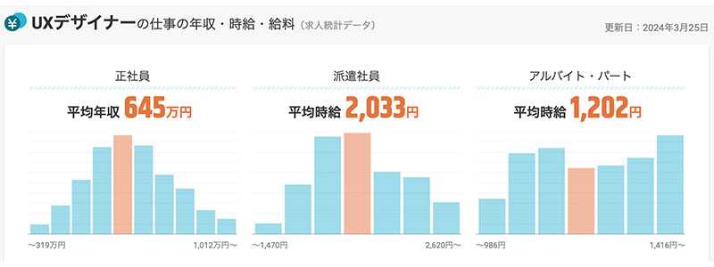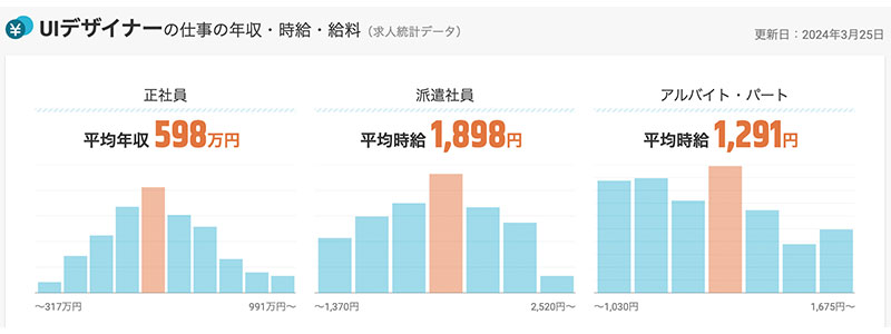 UI/UXデザイナーが会社員として働く場合、年収は平均して600万円ほどになります。