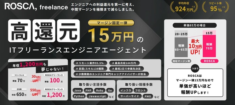 ROSCA freelanceは、透明性の高い清算システムにより高額報酬が期待できるエージェントサービスです。