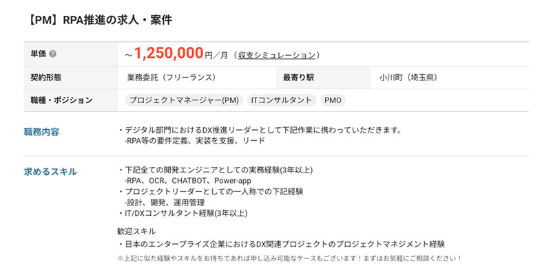 DX推進の指揮経験で月額100万円超の案件もある