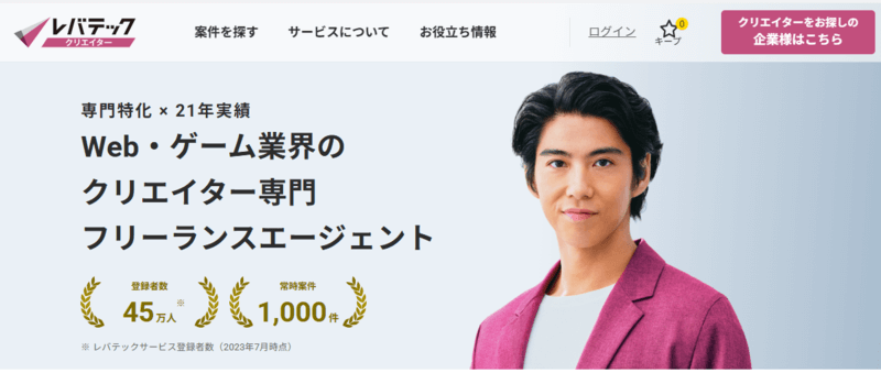 レバテッククリエイターはWeb・ゲーム業界のクリエイター職種専門で、フリーランスのシナリオライターにおすすめのフリーランスエージェントです。