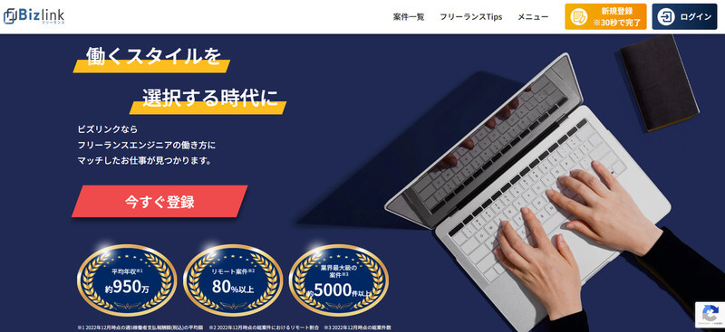 Bizlinkは、ハイエンド特化型のフリーランスエージェントです。