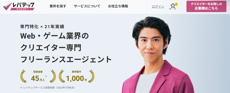 レバテッククリエイターは、Web・ゲーム業界に21年の実績を持つ専門特化型エージェントです。