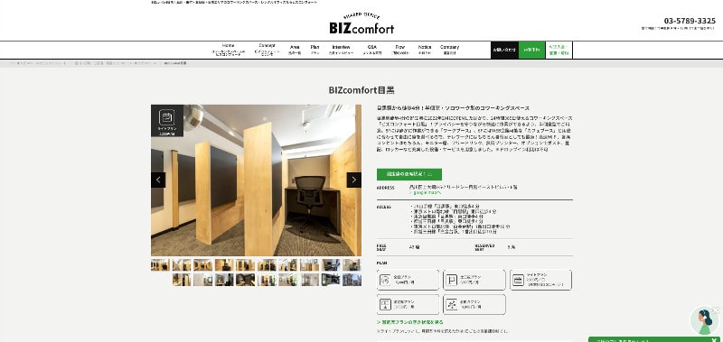 | 付帯サービス | Wi-Fi コピー複合機 フリードリンク 駐輪場 法人登記 など |