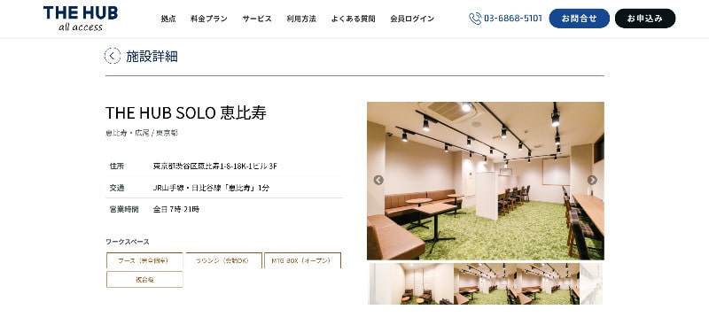 ワークスタイリング恵比寿の利用プランや料金は、問い合わせが必要。