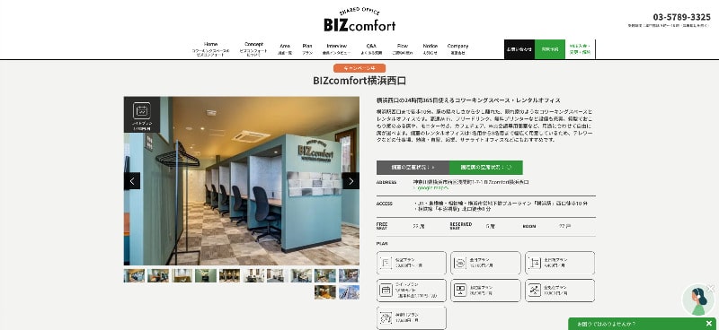 BIZcomfort横浜西口は、全国に拠点を持ち、席タイプや利用プランが豊富なコワーキングスペースです。