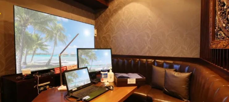 カラオケ店を利用した店内では、全ての席がカラオケルーム形状になっており、完全個室のソファー席でゆったりと作業できます。