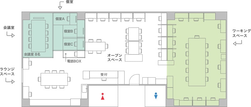 | 付帯サービス | コンシェルジュカウンター 電源 Wi-Fi ドリンクコーナー ミーティングルーム など |