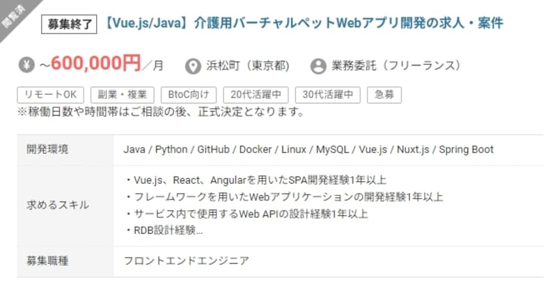 Javaは多くの企業で使われている言語のため、副業案件の数も非常に多いです。