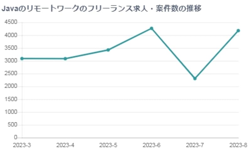 上記グラフの2023年7・8月を見る限り、Javaのリモートワーク関連の案件数は、この1カ月で急激に増えています。