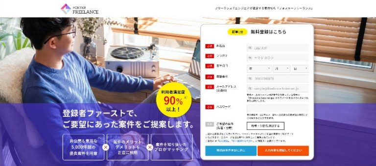 フォスターフリーランスは、DMM.comや価格.comなど大手企業との繋がりが豊富なフリーランスエージェントで、高報酬の案件を獲得できる可能性が高いです。