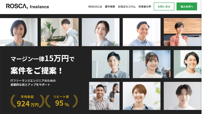 ROSCA freelanceは一律10万円のマージン制度を導入しており、公平で透明性の高い取引が可能なエージェントです。