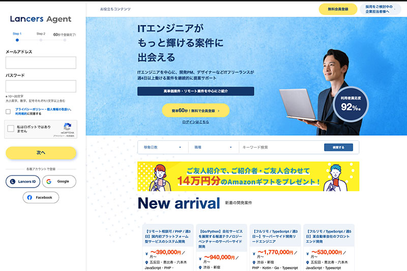 最短3日で案件に参画できるため、即戦力となる仕事を求めている方に適しています。