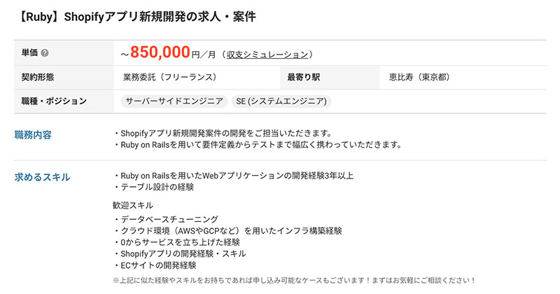 Shopify関連の案件も取り扱っており、ミッドワークス独自の案件が多いことが特徴です。