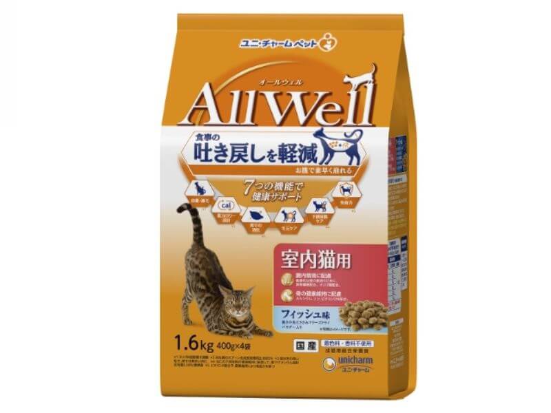 オールウェルは、独自の食物繊維配合技術で吐き戻しを軽減する国産キャットフードです。