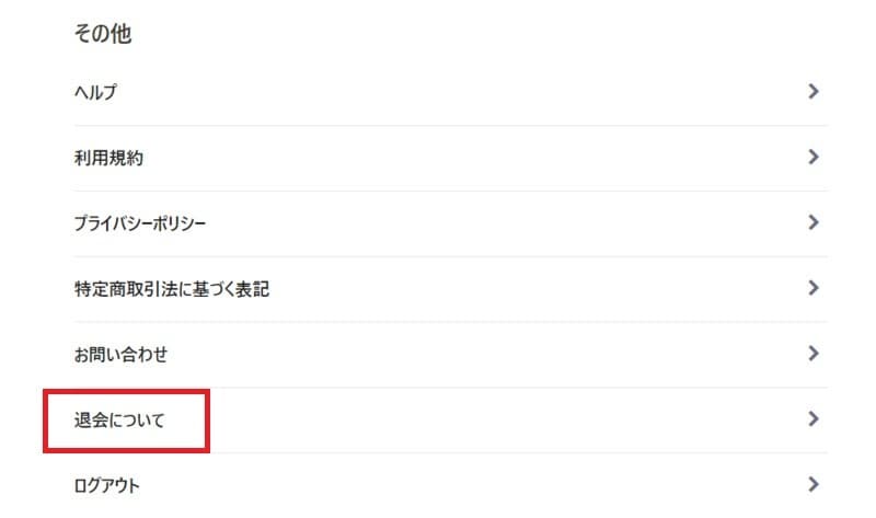 その後、設定一覧から「退会について」のオプションを選んでください。