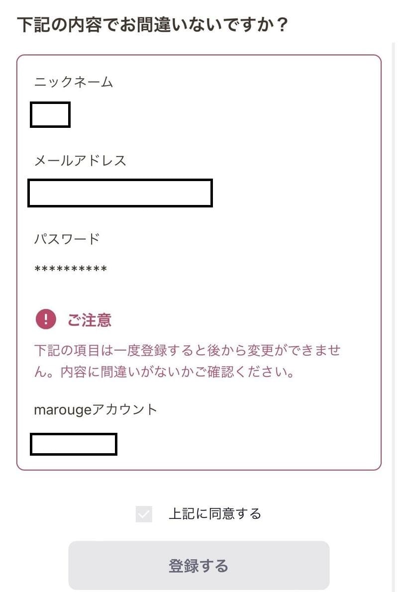 内容に誤りがなければ、同意の上「登録する」ボタンを押してください。