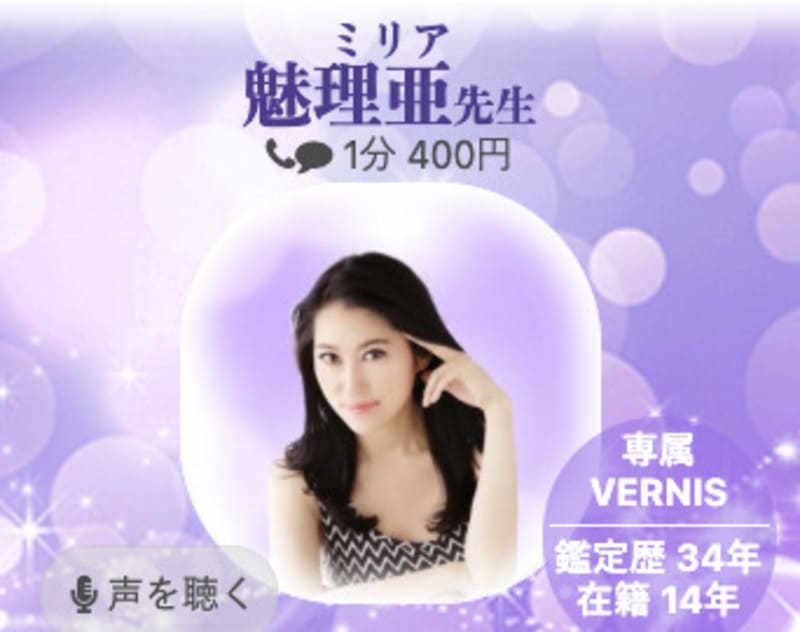 - 4位:電話占いヴェルニ|魅理亜(みりあ)先生