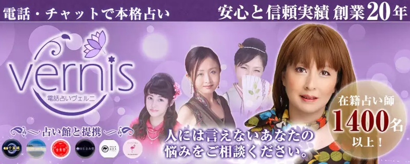創業20年以上の実績を誇る「電話占いヴェルニ」は、全国の実力派占い師が集結する老舗の電話占いサービスです。厳正な審査を通過した占い師のみが在籍しています。