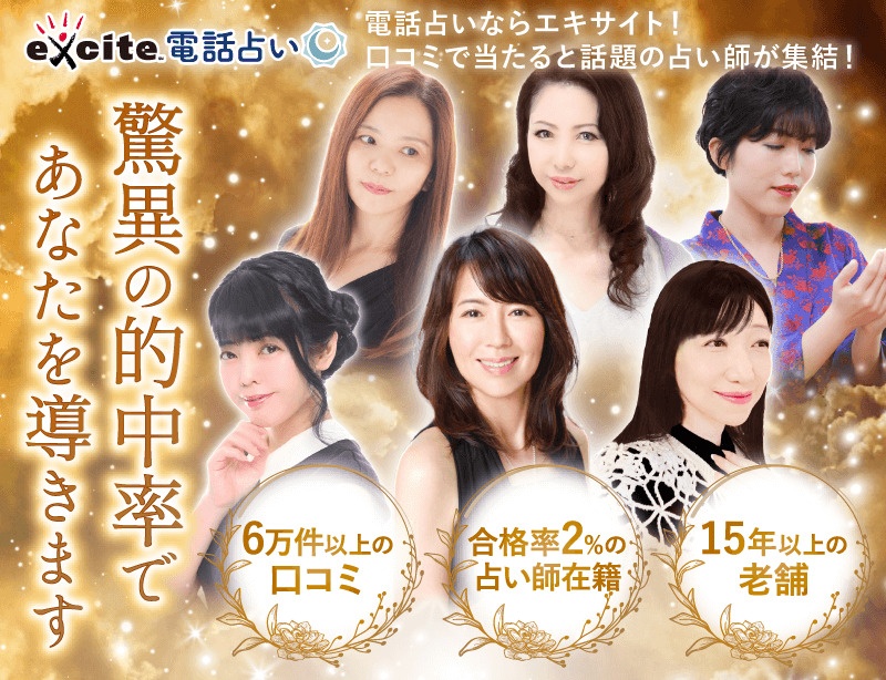 電話占いエキサイトは著名人も利用するほど名のしれた、評判高い電話占いサイトです。検索機能が充実しており占術・悩みからベストマッチする先生が一瞬で見つかります。