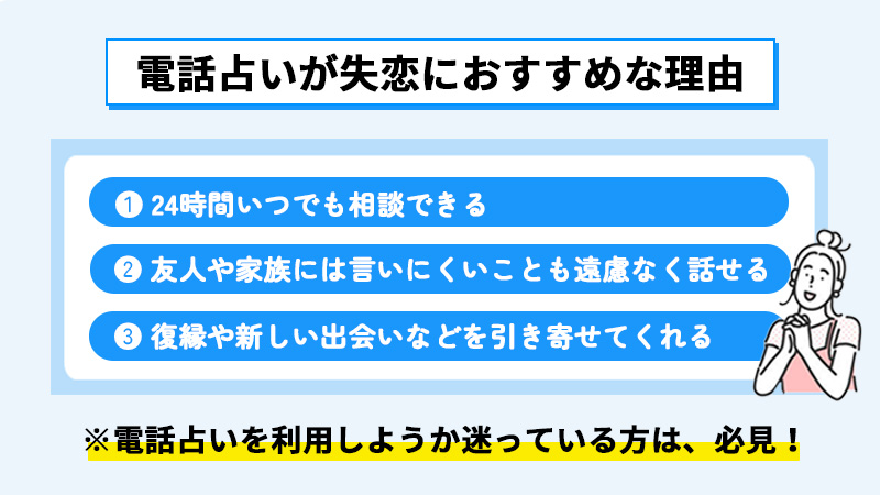 失恋に電話占いがおすすめな理由は、以下の3つです。