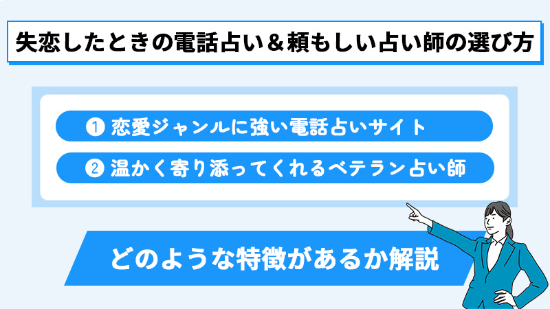 失恋したときに電話占いを利用する場合、以下2つのポイントに注目して選ぶと失敗しにくいです。