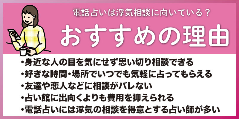 - 電話占いは浮気相談に向いている?おすすめの理由