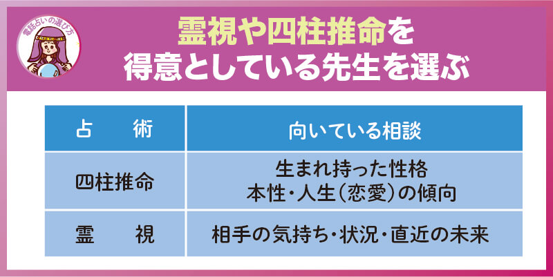 - 霊視や四柱推命を得意としている先生を選ぶ