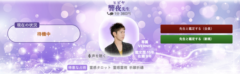 - 7位:電話占いヴェルニ|響夜(ひびや)先生