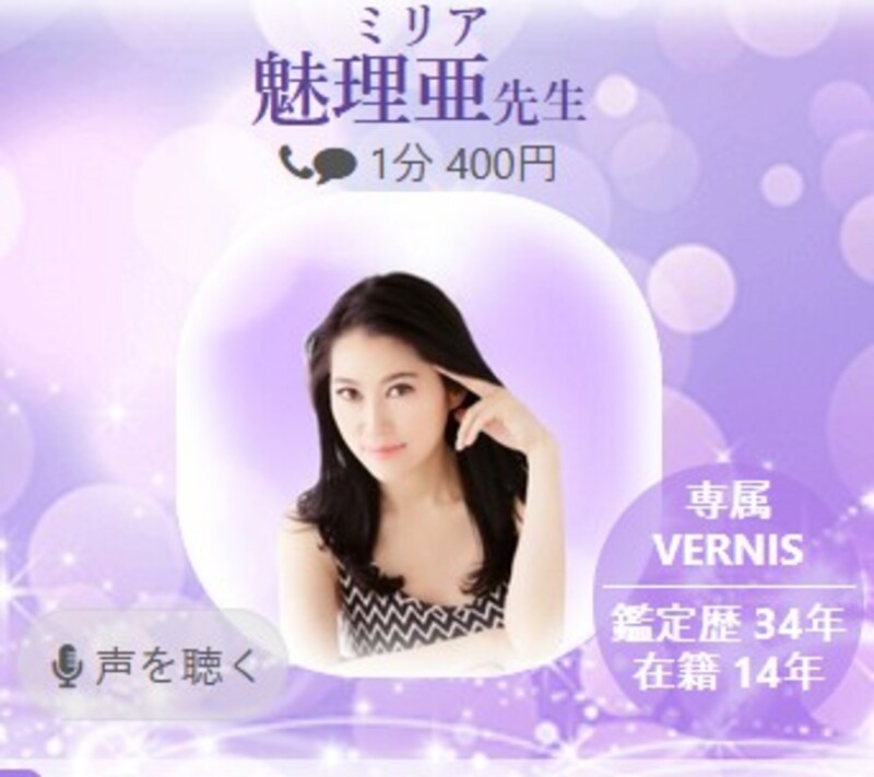 - 9位:電話占いヴェルニ|魅理亜(みりあ)先生