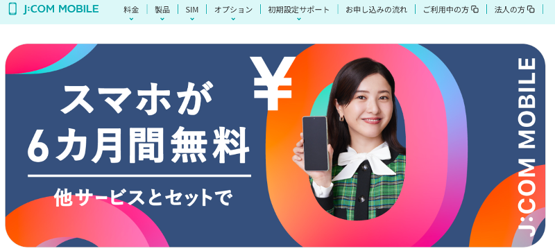 | 特典 | J:COMモバイル 最強ヤング割+データ盛:26歳以下とその家族の利用で月額料金が安くなる WEBでJ:COM MOBILE Aプランに申し込むと契約事務手数料(税込3,000円)が無料 |