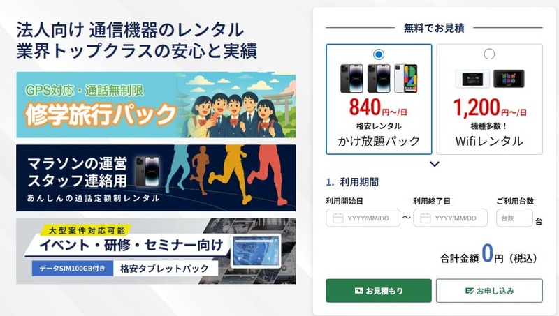 Wi-Fiレンタルは法人にも対応しており、研修や繁忙期で一時的に大量のWi-Fiが必要になったときにおすすめです。