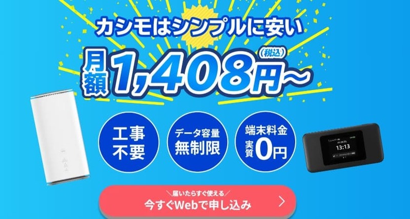 カシモWiMAXも5G通信に対応しているため、5G対応エリア内ではさらに通信速度が上がるでしょう。