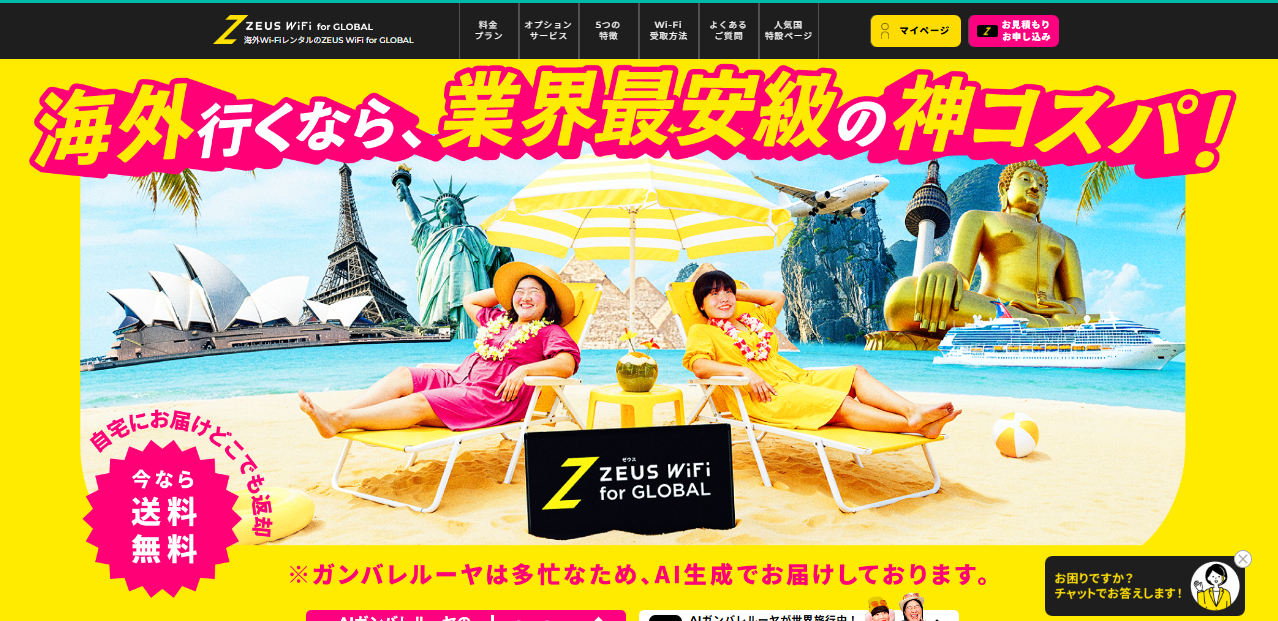 グローバルWiFiは海外でもデータ無制限プランが使えるレンタルWi-Fiです。今なら通信量から1,000円割引されお得に利用できます。